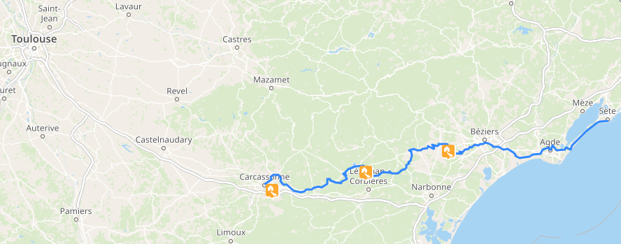 翌週月曜日の朝、トゥールーズを出発し、ミディ運河での旅を始めました。目的地はカルカソンヌで、そこで小型船での旅が始まります。
