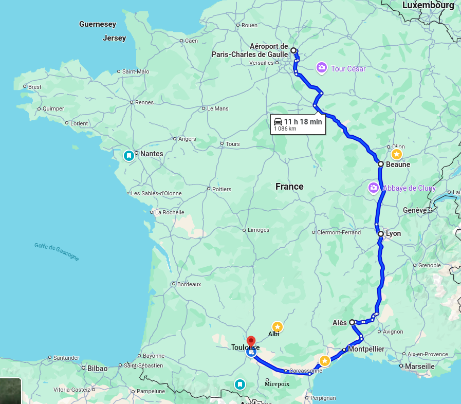 火曜日の朝9時頃にパリ・シャルル・ド・ゴール空港に到着し、レンタカーを借りて旅のはじまりです。最初の夜はブルゴーニュの手前、ディジョンの町で過ごしました。 (9月の写真)ブルゴーニュは名だたるワインの名産地ばかり、村の名前を聞くだけで喉が鳴ります!